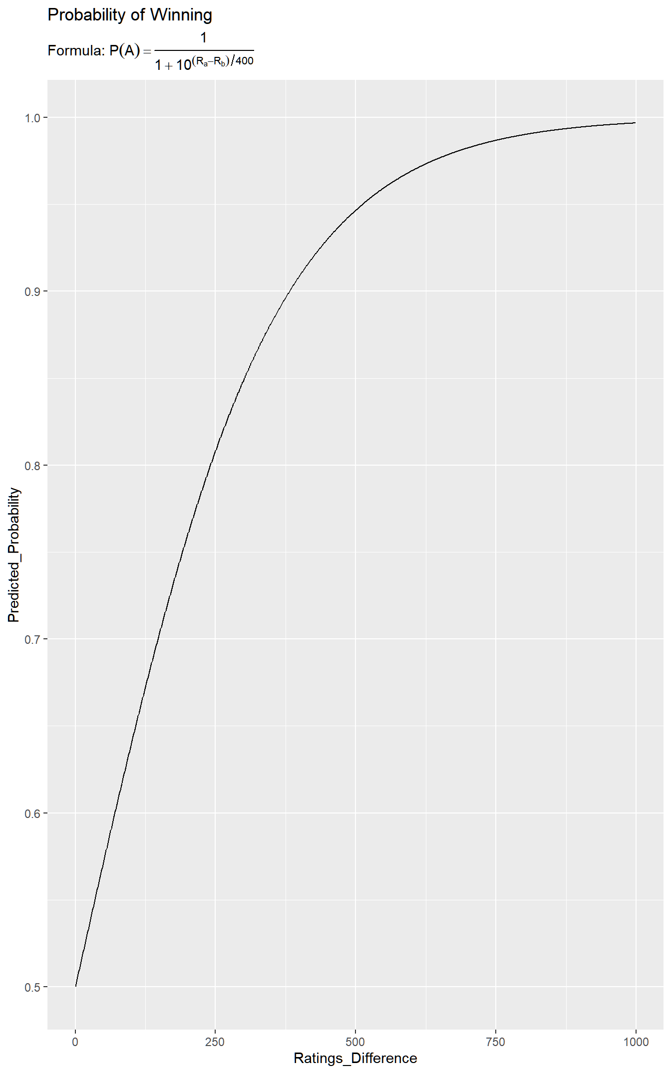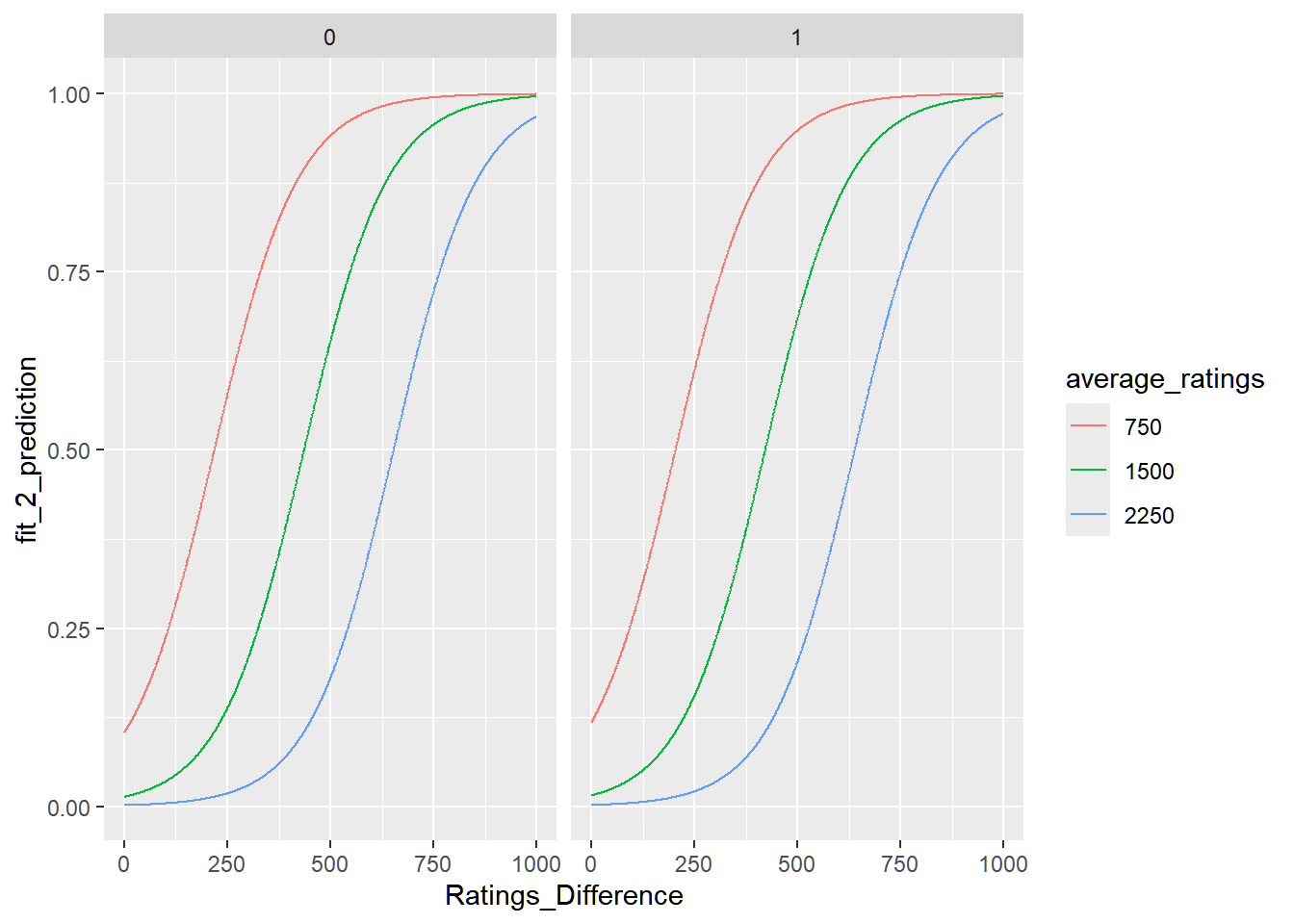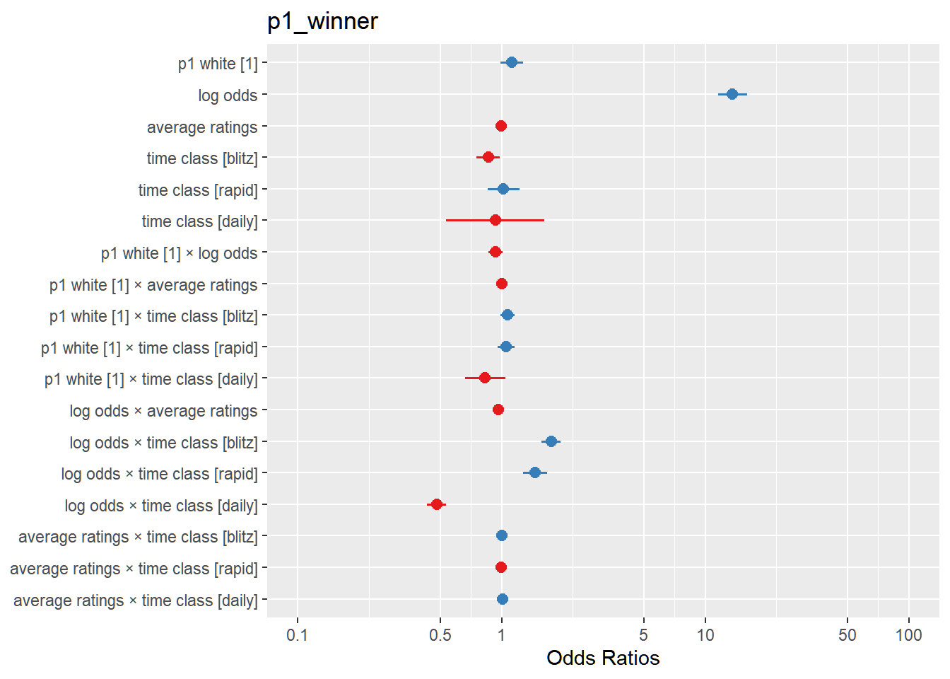 That means we are modeling the log odds of player 1 winning: